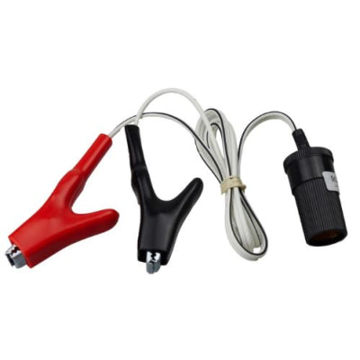 A cigar socket to 2 fully insulated crocodile clips with 1 metre of cable. Useful for : 12v televisions, kettles, battery chargers, mobile phones and many other items. Call Us Email Us