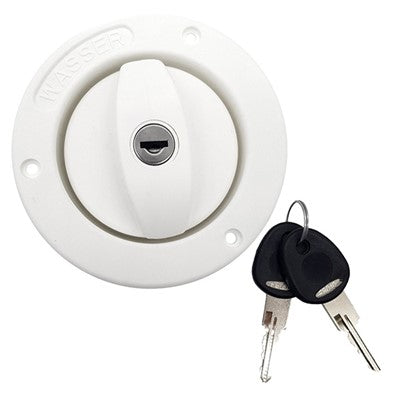 Fawo filler cap, white in colour with a 40mm diameter. 40mm hose connection. complete with 2 keys.