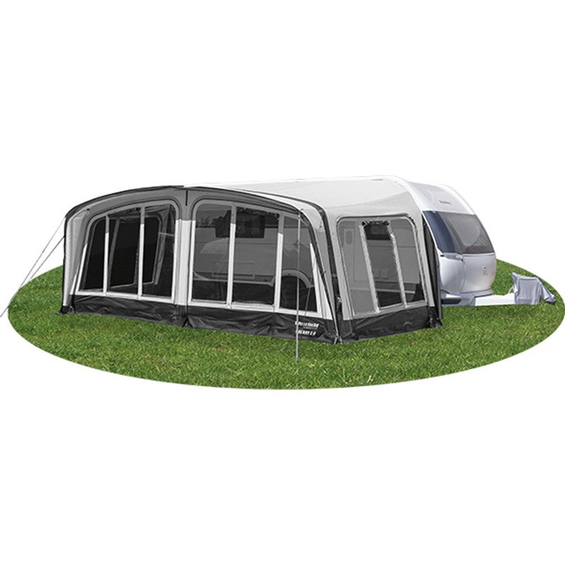 The removable front panel walls come complete with tinted windows as well as on the side panels with mosquito netting enabling you to have privacy and ventilation as and when you require it on your holidays. With the large panoramic windows, you always have a perfect view and optimal lighting conditions in your air awning or alternatively every panel on the inside has a zipped blind giving you privacy when needed. A limitless panoramic feeling awaits you.