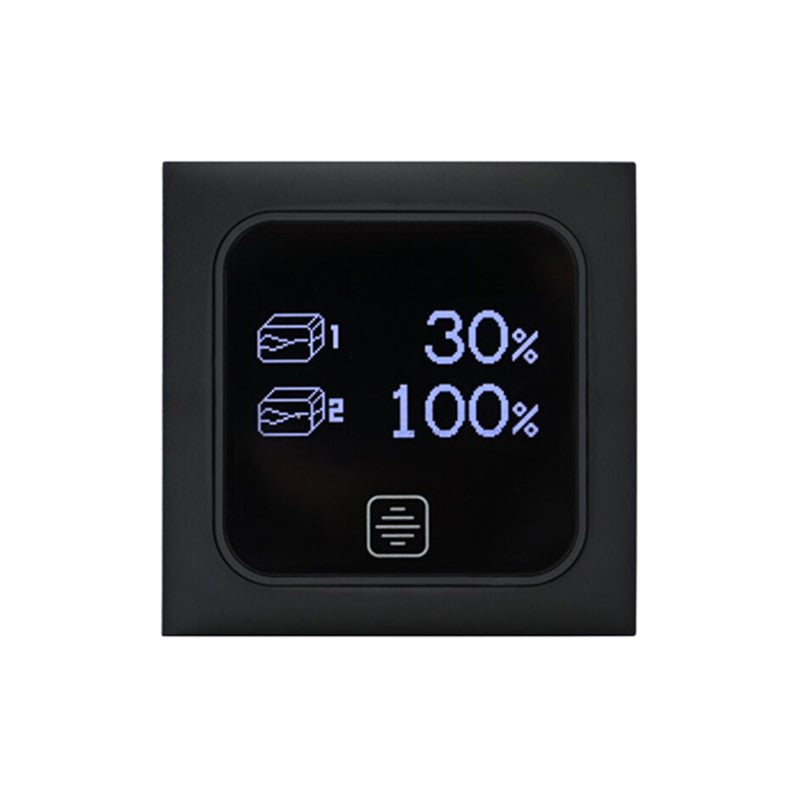 12V TOUCH TEST PANEL with OLED display to test 2 water tanks’level in percentageThe kit includes 2 cables L=4m, “BMAC1C” frame and a wall-fixing spacer..This panel fits also the “Modular Plates” range.NB: electronic tankprobe mod. “SPE” must be ordered separately.12V Power supply.