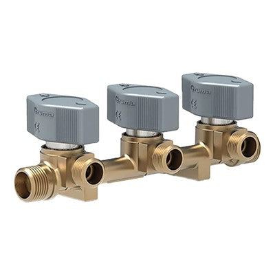 Low pressure, brass shut off tap / manifold for 8mm pipe in and out. over-lock turning tap head means you can't open and shut them without knowing you are doing it. this manifold has a 8mm feed pipe in connection at either gas in feed end.