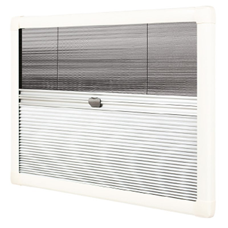 • The ucs is a compact combination blind with pleated insect screen and sun protection. the fly screen and the blind material are both fabric-folding - developed for long and intensive use. the size listed is the aperture size of the window the blind will fit, not the size of the blind itself.