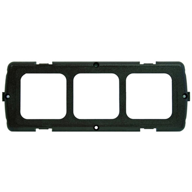 Support frame for use when fitting three cbe sockets. the frame clips around the sockets and is screwed in to place on the wall. a decorative 3-way outer frame can then be clipped over the top of the support frame.