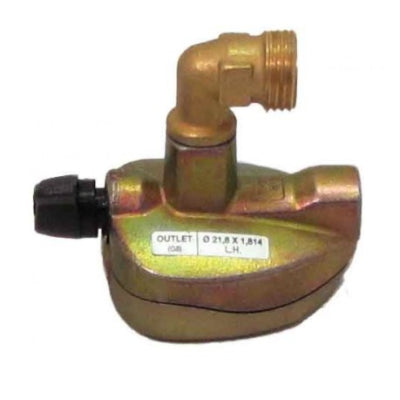 27mm clip on adaptor with 90' elbow connection for 21.8mm butane hose. for use with bp gas light or patio gas cylinders with 'clip on gas valve'.