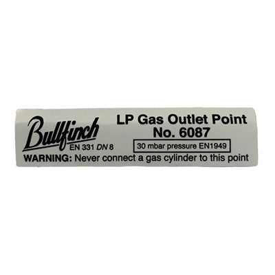 The Bullfinch Sticker is designed specifically for Bullfinch 6087 Gas Points, ensuring clear identification and safe usage. This high-quality sticker provides essential labeling for your BBQ gas outlet, helping to maintain compliance and safety standards.