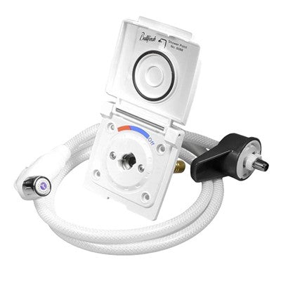The Bullfinch Shower Point is a high-quality external shower unit, ideal for outdoor use on motorhomes, caravans, and campervans. It connects to your existing hot and cold water supply, providing a convenient solution for outdoor washing—perfect for rinsing off after outdoor activities, washing pets, or cleaning equipment. The unit features a push-and-turn activation system for safety, ensuring no water flow without the connector inserted.
