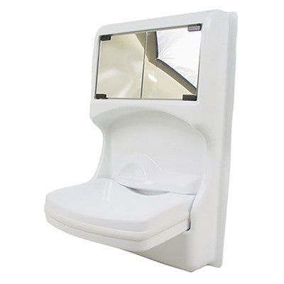 Practical - luxurious - shapely. mirror cabinet on top for bathroom utensils. toothpaste, razor, nail polish and much more is neatly stowed away. the washbasin can be folded out to leave space even in narrow washrooms. behind it is a console for a mixing valve (cold and warm water) with integrated soap dish. the elegant design gives your washroom a noble look. h760 x w500 x d130mm