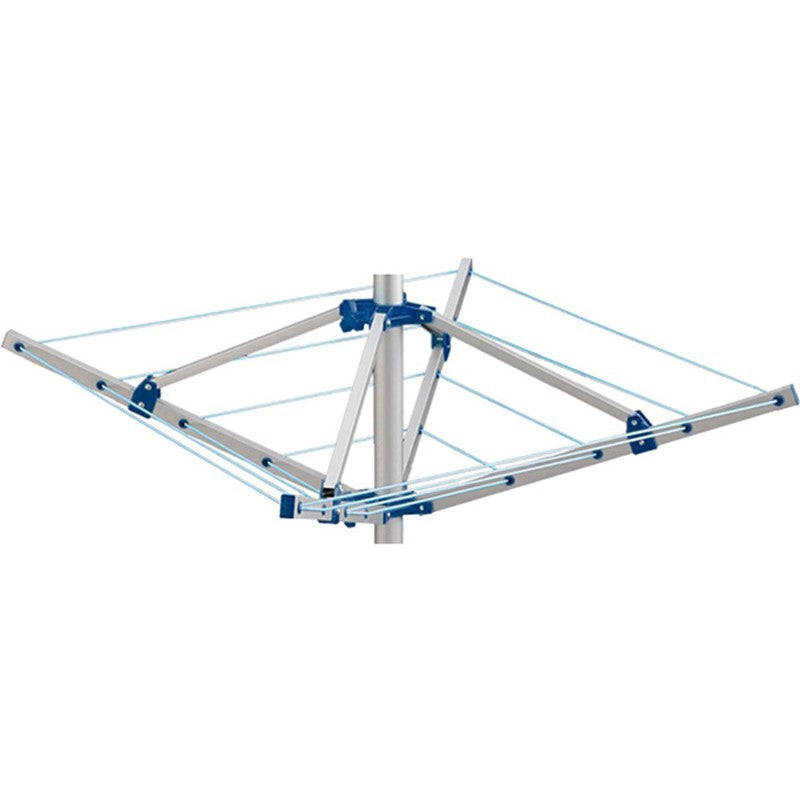 The Brunner Laun Tree 4 Arm Extension is an additional aluminium clothes dryer designed for retrofitting to any rotary airer with a 40mm central tube. This extension adds four arms, offering more drying space with a total cord length of approximately 7.5 meters. It folds down compactly and comes with a carry bag for convenient transport and storage, making it ideal for outdoor and home use.