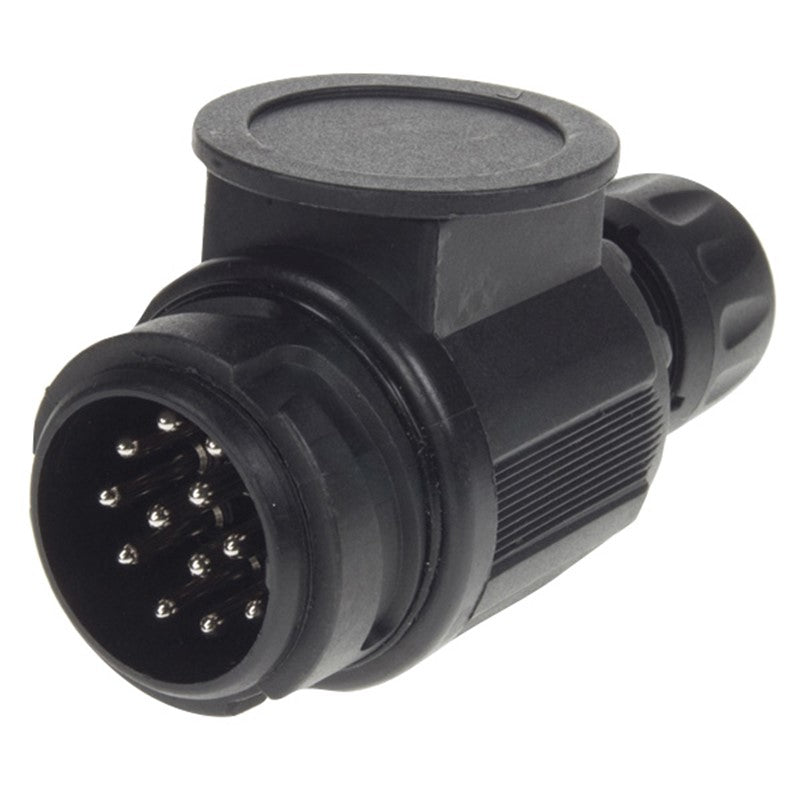 Liberty Leisure Outdoors 12V 13 pin Plug This is the Liberty Leisure Outdoors 12V 13 pin plug. Ideal for use in caravan, motorhome and trailer applications. It has 13 brass pins with screw terminals and has a cable entry diameter of 14-16 mm.