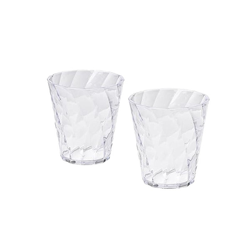 This set of 2 water glasses from Omada combines durability and elegance. Made from Tritan, these glasses are unbreakable while maintaining a crystal-clear transparency comparable to real glass. Each glass has a 35 cl capacity and is dishwasher safe and suitable for refrigerator use, making them perfect for everyday convenience.