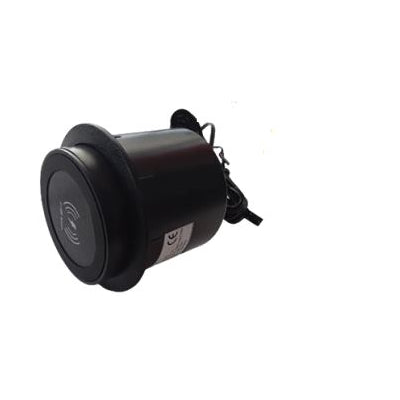 The mini pop-up socket features 2x usb charging points plus a wireless charger. ▪ charges three mobile phones at the same time ▪ in accordance with wpc 1.2.4 qi standard Input: 12v-24v 2a with 1.4m 2 x 0.34mm² input cable + led mini plug Output 1 (wireless charge): 5w/7w/10w Output 2 (usb1): 5w max Output 3 (usb2): 5w max Transmission distance: ≤ 8mm Charging efficiency: 75% Cut-out dimensions: 60mm Dimensions: d70 x h50mm Gross weight: 70g Certifications: ce, rohs Call Us Email Us
